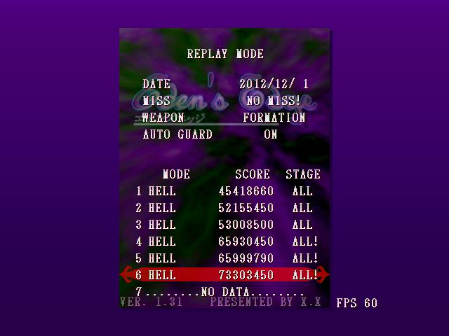 4面,5面道中崩れ&5ボス第2以降フルボッコのプレイでしたが、hellのスコア目安としていた2億に届いたのでここらで終了。